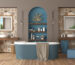 Paleta kolorystyczna to zazwyczaj neutralne tony: biel, szarość, beż – można je przełamać szklistą kością słoniową, ziemistymi tonami, a dla głębi wprowadzić akcenty granatu lub czerni. W małej łazience można zastosować mozaiki jedynie na jednej lub dwóch ścianach – inaczej wnętrze może stracić lekkość.